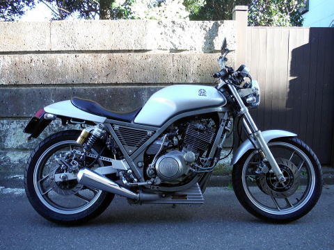 3MAのフレームにXT660の水冷5バルブ単気筒を積んだスーパーシングル