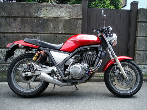 エンジンの回り方がどこかのバイクに似ている。このV-TWINエンジンはいいです。