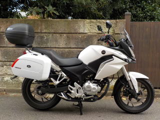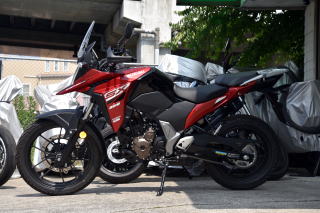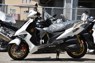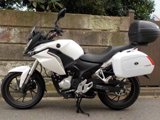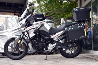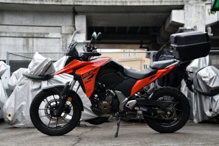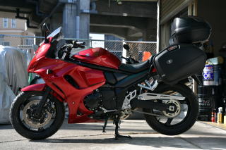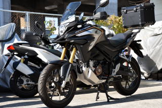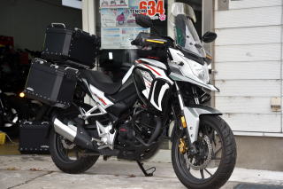 走りのRS入荷しました。純正ケース類もついていますので、普段乗りにはトップケースで、ロングツーリングではパニアもつけてと、言うこと無しでしょう。