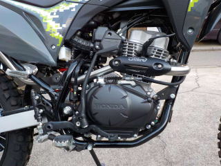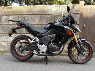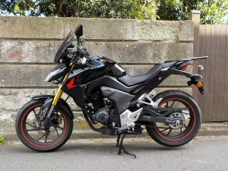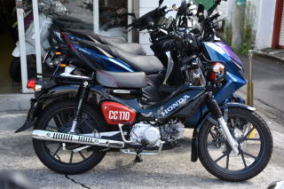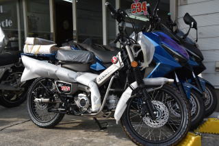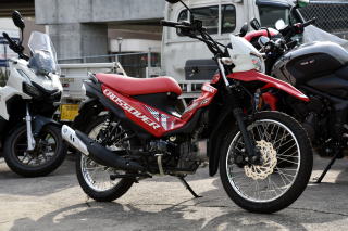 ネオレトロデザインのCGX150をベースにトリコロールカラーに身を包み、シングルシートカウル、バーエンドミラー、チューブレスクロススポークホイールなど、カフェレーサースタイルに仕上げられたSP(スペシャル)です